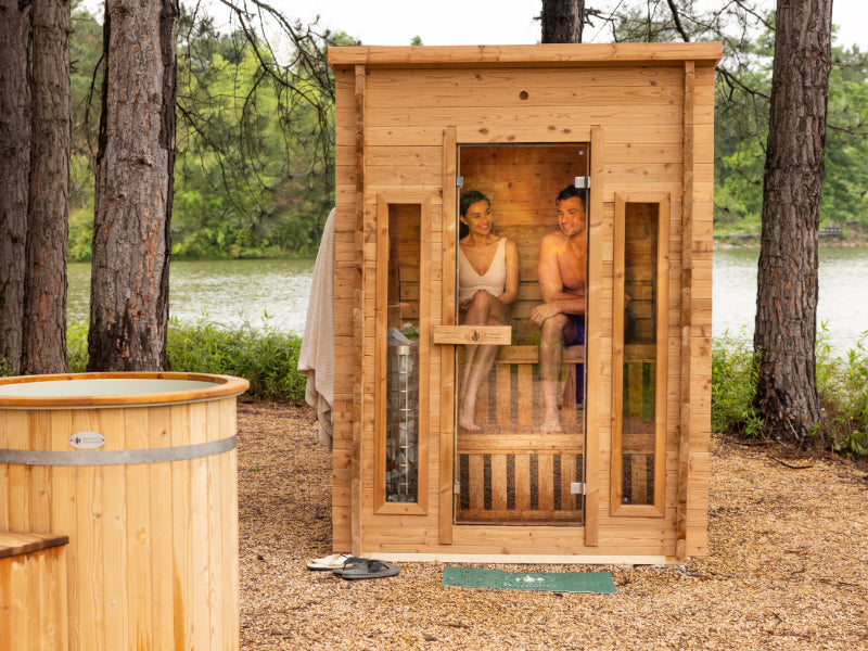Maximize your outdoor space with The Cabin Sauna, the perfect solution for small backyards. Designed to fit seamlessly into limited areas, this compact sauna doesn't compromise on comfort or functionality. Its two-level seating allows you to effortlessly cycle between high and low heat, providing a customizable sauna experience without the need to adjust your heater settings.