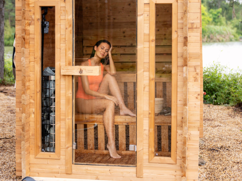 Maximize your outdoor space with The Cabin Sauna, the perfect solution for small backyards. Its two-level seating allows you to effortlessly cycle between high and low heat, providing a customizable sauna experience without the need to adjust your heater settings.