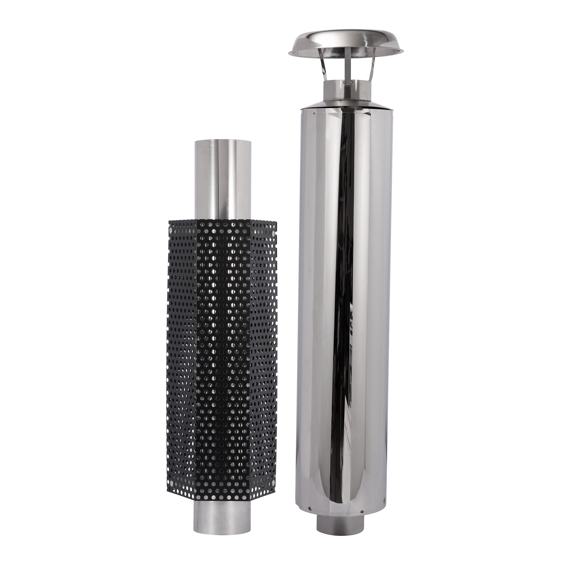 Our chimney kit has everything you need to install the Harvia M3 Wood Stove in a classic barrel sauna. This kit includes a chimney with attached rain cap, rubber flange, protection for the wall and floor, and more.