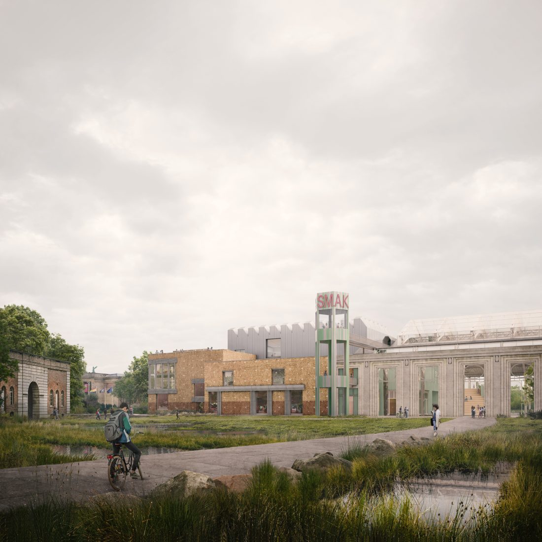 The winning scheme will also revamp the surrounding Citadelpark – Ghent’s largest park, laid out in the 19th century along English ‘picturesque’ landscape principles. The 1856 Citadel Gate, an overgrown folly structure at the edge of the park, will become an entrance to the cluster of buildings, while a new belvedere tower will mark the complex entrance.
