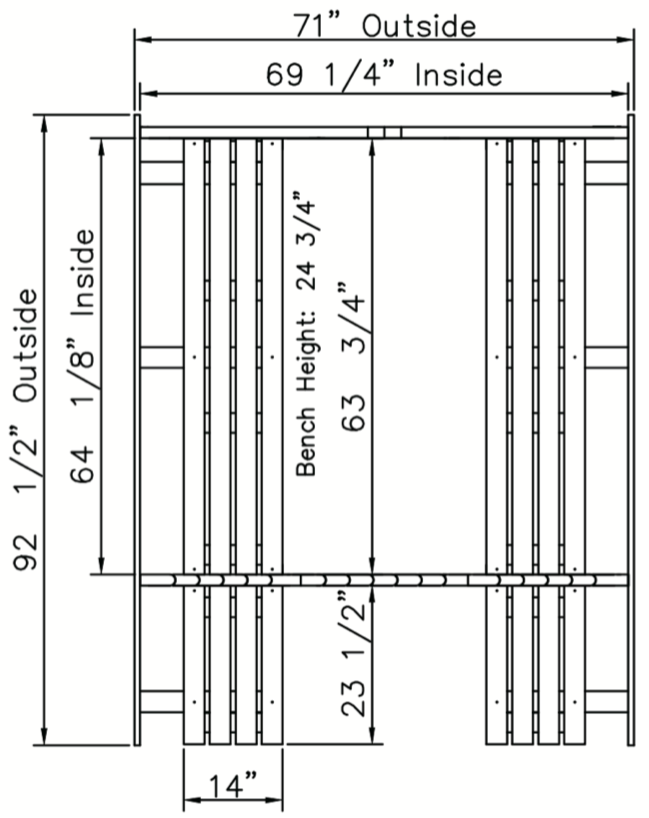 92 ½” L x 72 ¾” W x 76 ½” H
