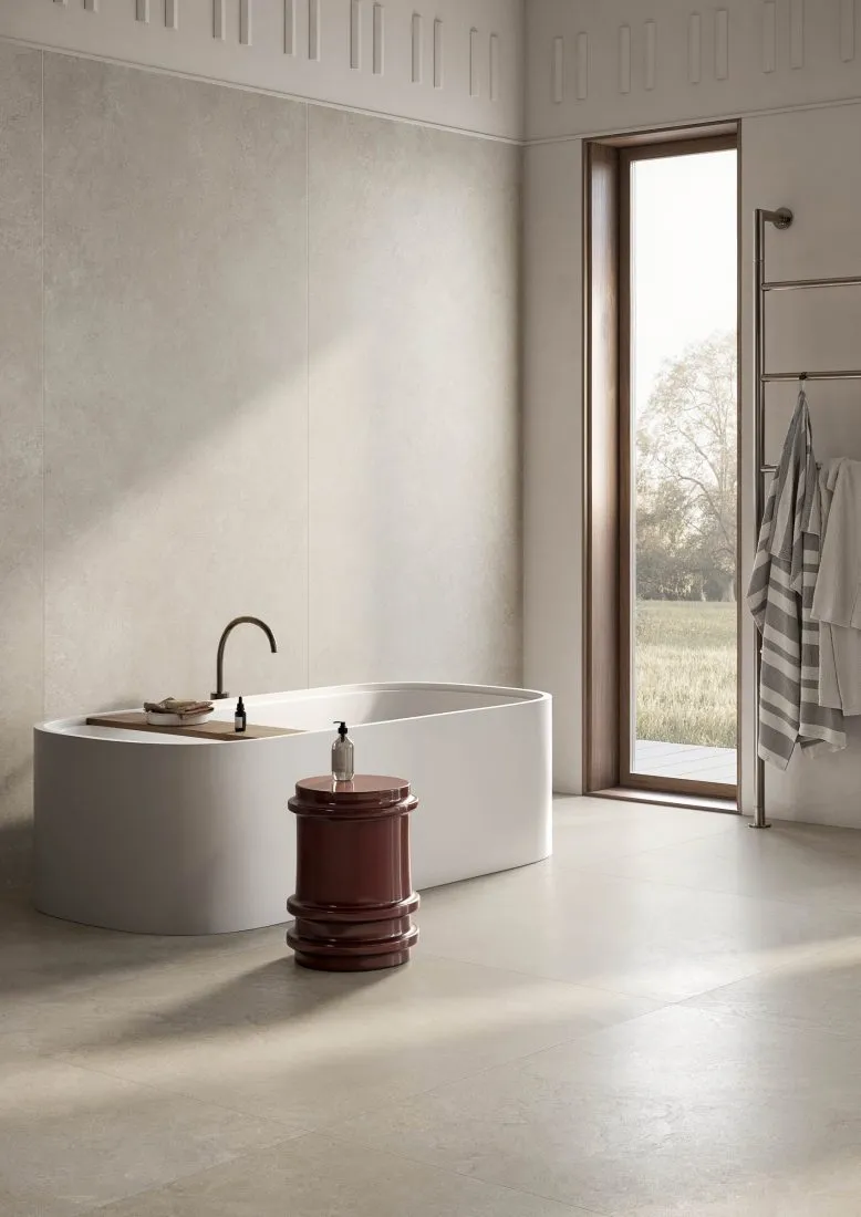 The six collection colours (Lithos Beige, Bianco, Grigio, Nero, Taupe and Tortora) come with a thickness of 9 mm in the sizes 30x60 cm and 60x60 cm, with an anti-slip surface, and in the new R10 natural finish, which combines a pleasant appearance and a delicate tactile sensation with the technical characteristics required for increasingly international design projects. The 90x90 cm size is available with a natural surface, the 60x120 cm size is available in R10 natural, satin and grip finishes, and the 120x120 cm size is available in R10 natural and satin surfaces, while in the 120x278 cm size, the new Lithos collection comes in a 6 mm thickness and with an R10 natural finish, as well as an extraordinarily soft satin finish, for a natural, matt look.