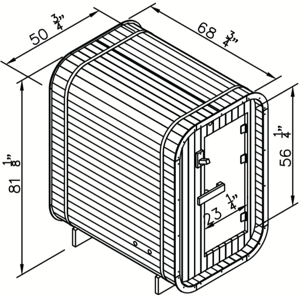 68 ¾” L x 50 ¾” W x 81” H with trim installed // 68 ¾” L x 48 ¾” W x 80” H without trim installed