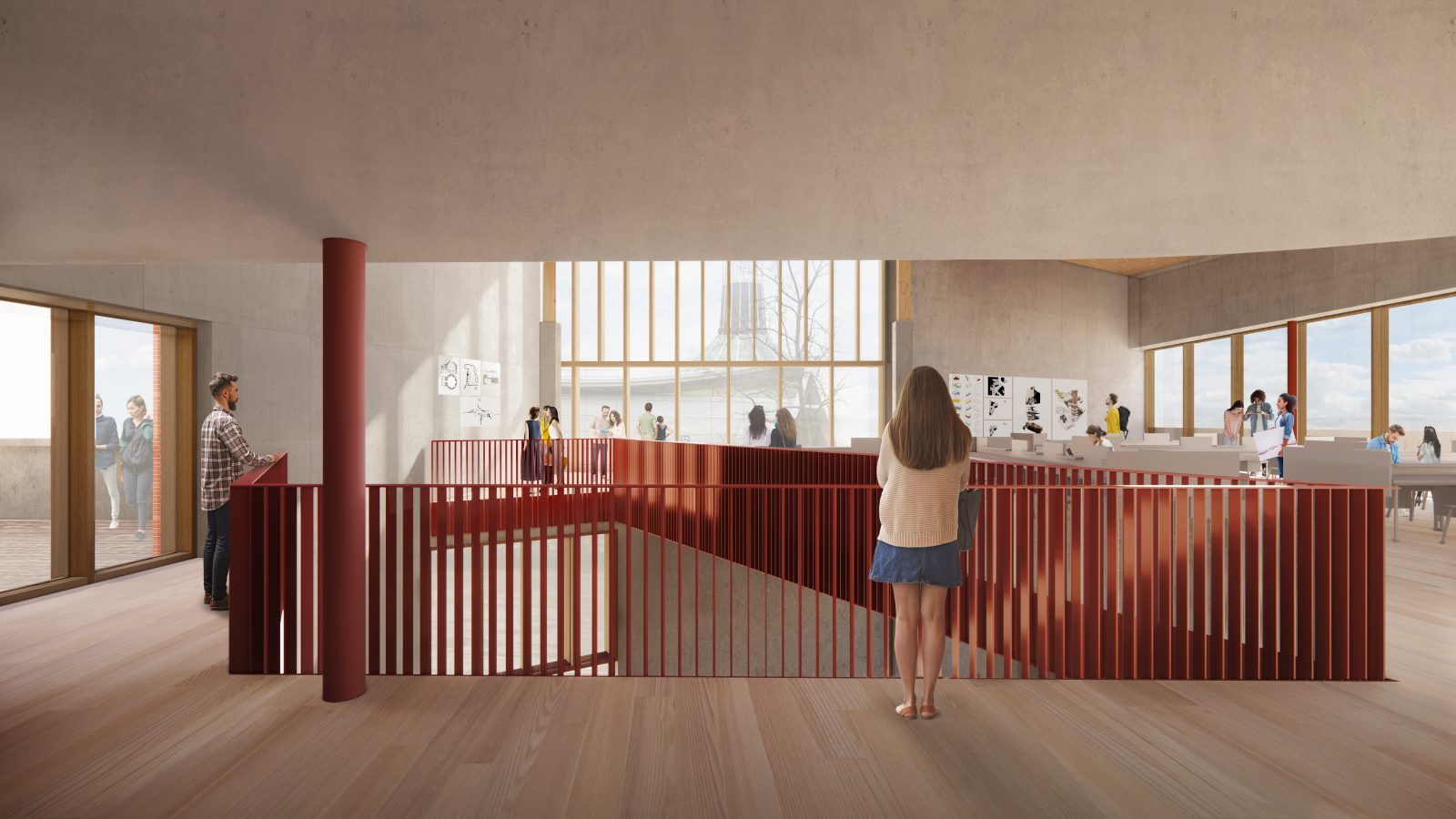 O'Donnell + Tuomey’s design for Liverpool University’s School of Architecture extension – internal view towards the cathedral