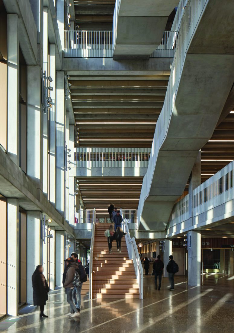 The six-storey, multipurpose university building in south-west London is competing for the 2022 European Union Prize for Contemporary Architecture against a timber Spanish social housing project, a co-working scheme in Berlin, an urban farm on a former railway line in Paris and an art and architecture museum in Belgium.