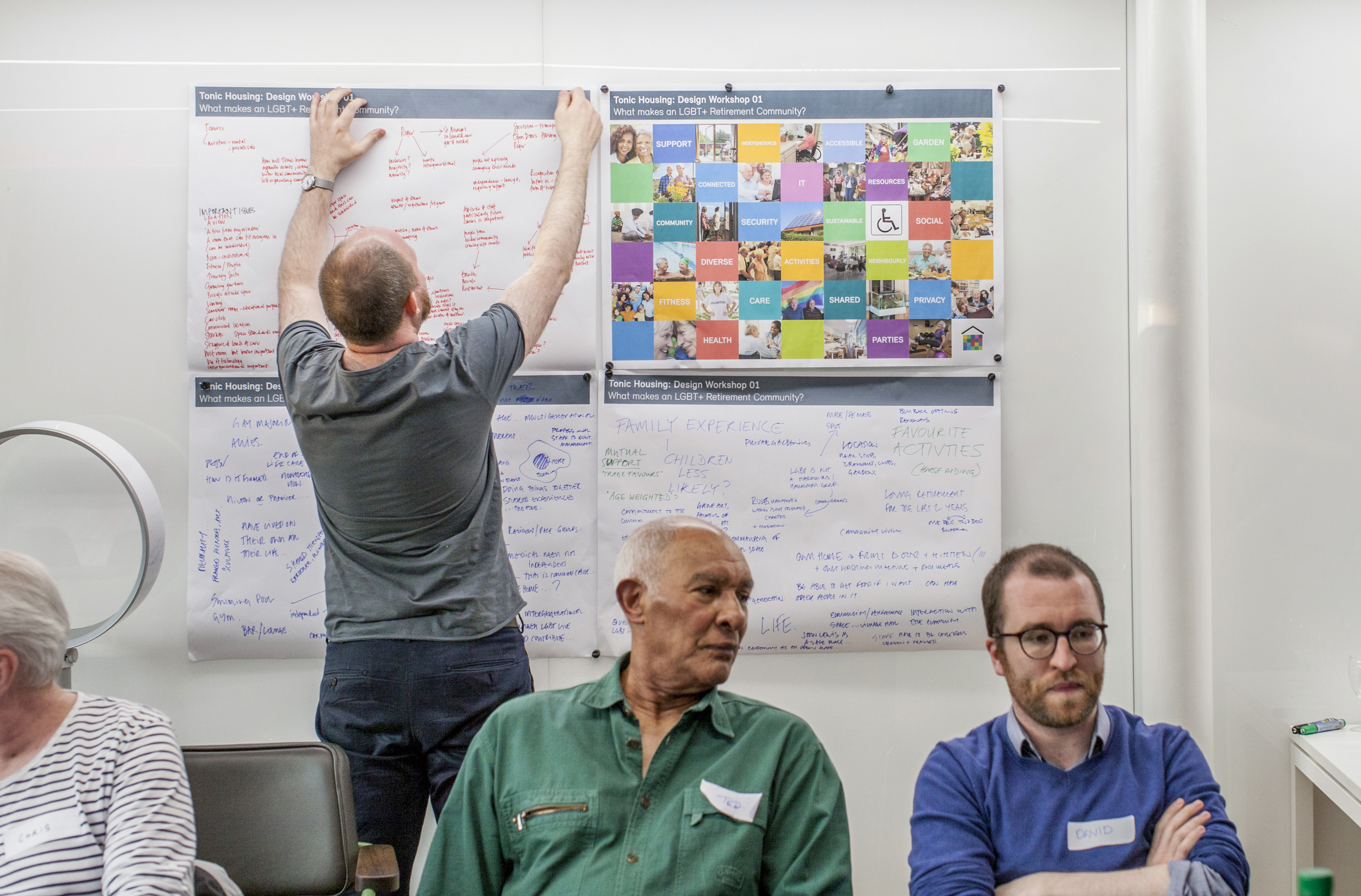 He adds: ‘Our work with Tonic Housing explored what a queer retirement space might look like through a series of workshops with older queer people – the key takeaway being a place which is LGBT+ affirming but not exclusive, open and connected, supportive and sociable.