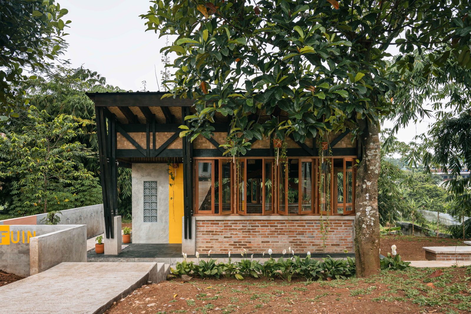 The timber-framed structure, which serves as a prayer facility and community centre for Bogor in West Java, consists of one main space adjacent to a small, covered veranda and washrooms. Seismic activity in the Indonesian province was taken into consideration during the design process.
